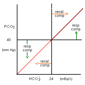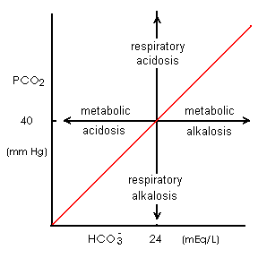 | Acid / Base disturbances are reflected in the [(HCO3- ) / (CO2)] ratio: |