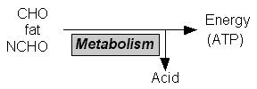Acid is a waste byproduct of energy production and metabolism, as CO2 (~ 15 mole/day) and as nonvolatile acids (~ 100 mEq/day).
